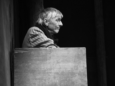 Герои театра Погребничко — а у него каждый актер становится своеобразным блуждающим по разным текстам героем — никогда не перевоплощаются в персонажей и никогда не рассказывают никаких историй. Так и в «Предпоследнем концерте Алисы в стране чудес» по мотивам Льюиса Кэролла. Бог весть откуда понасобирали в хитрую недетскую сказку всех этих удивительных, несовместимых типажей. Трех скромных худеньких женщин в черных нацистских формах. Двух советских военных, причем из разных эпох, один — с ромбиками на отвороте кителя, другой — со звездочками на погонах; в компании с невысоким седым мужчиной в очках они образуют трио чеширских котов. Мужской квартет, трое из четырех участников которого меняют строгие черные костюмы на какие-то кожано-меховые монгольские наряды. Лысоватого, молчаливого короля и хохотушку-королеву в ватничке модной расцветки и с красным цветком в волосах. Герои Погребничко, наивные и неловкие, как всегда похожи на опустившихся интеллигентов, на смешных, несдавшихся романтиков, оттесненных куда-то на обочину жизни, но живущих в соответствии с неким тайным кодексом. Каждое свое появление на свет они принимают как подарок, слегка смущаются и неуверенно обживают предложенное им пространство.